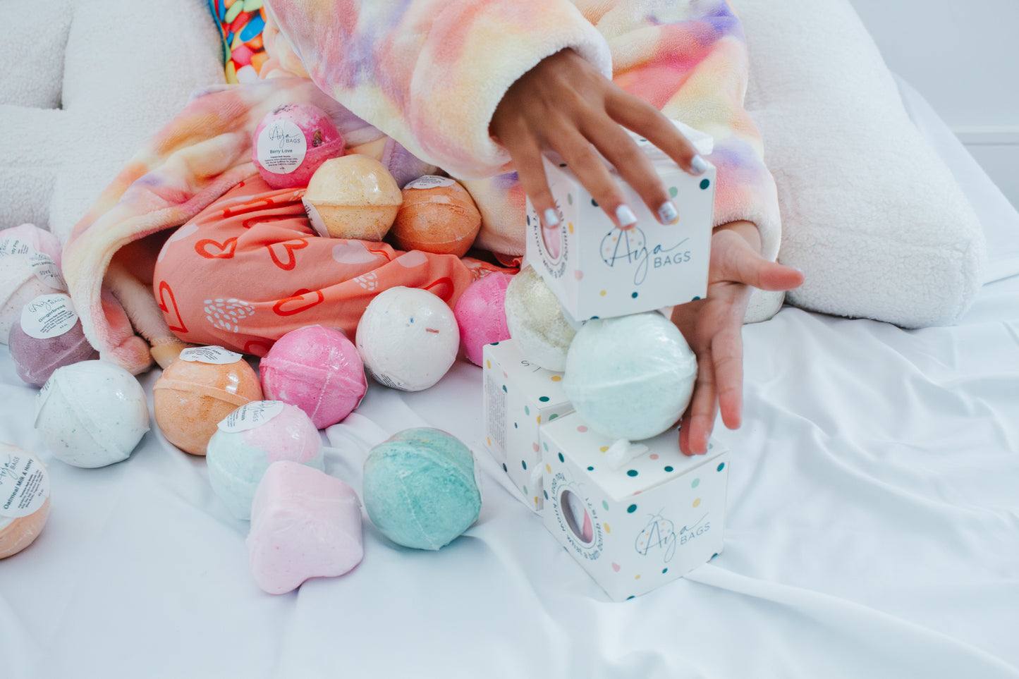 Aya's bath bombs are individually packed in a gift-ready box, offering an affordable and thoughtful treat for any occasion.