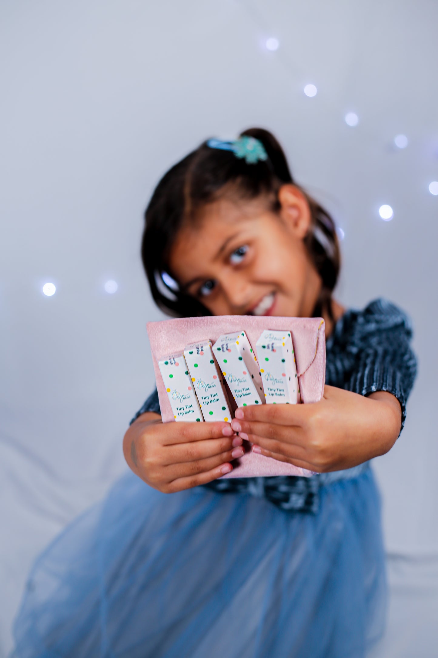 Discover the Tiny Tint Balm Collection from AYA Bags, featuring four safe, kid-friendly tints: Pearly Pink, Shimmy Shimmer, Silly Scarlet, and Pretty Plum. Packed in AYA Cosmetics Snap Bag, available in dark cream, red, and pink.