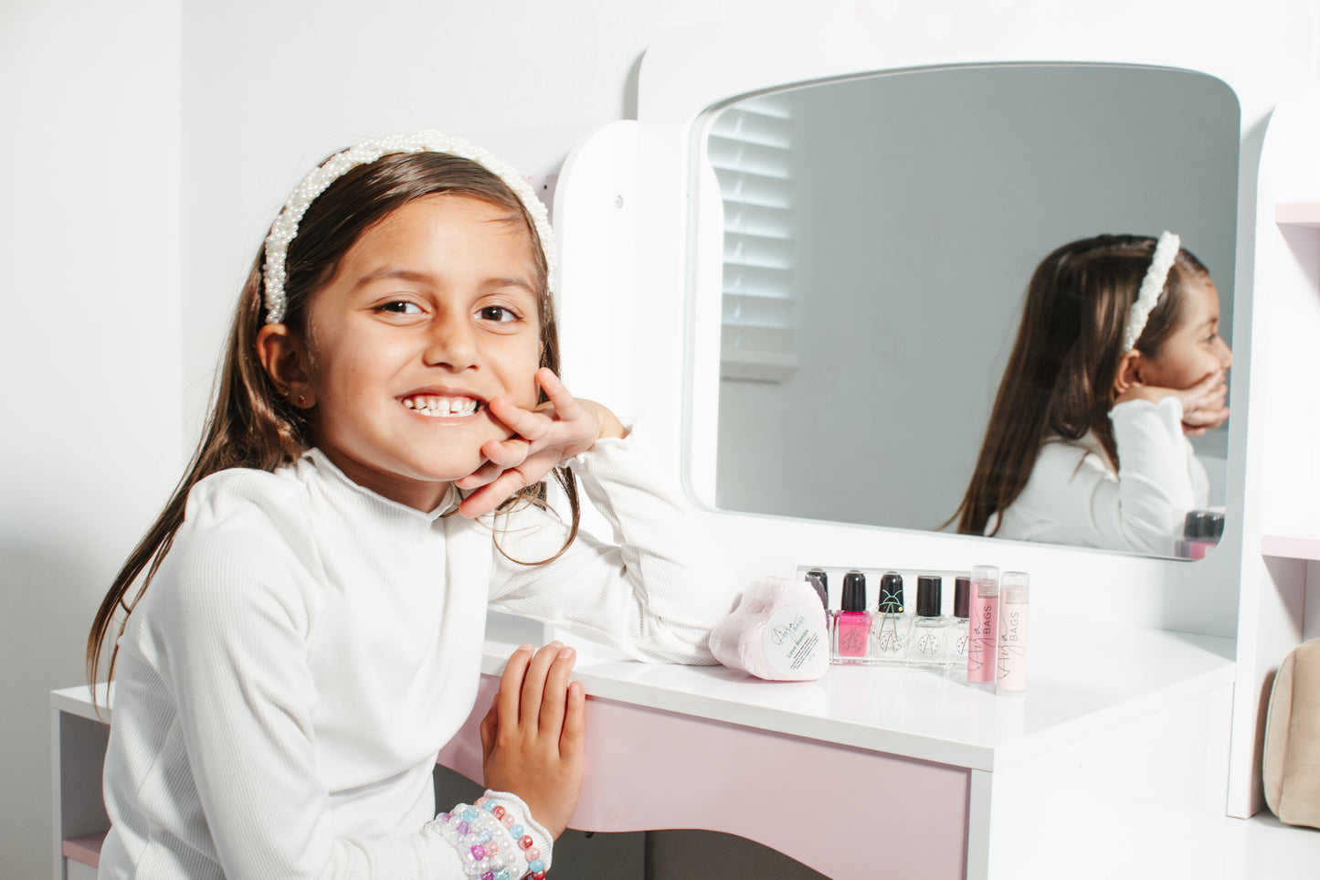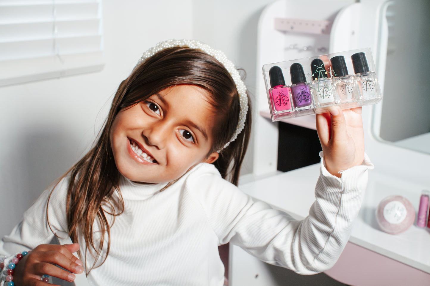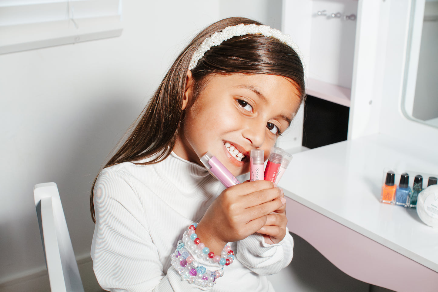 Get ready for fun with Aya’s Everyday Tint and Little Cinco Collection. This AYA Cosmetic Snap Bag includes two tasty lip balms—strawberry and cherry—and two tiny tints in pearly pink and shimmy shimmer for a splash of sparkle. Plus, the Little Cinco Dazzle Me Set adds extra flair with a lip balm and breathable nail polish, all in a cute bag available in dark cream, red, or pink. Perfect for on-the-go glam!