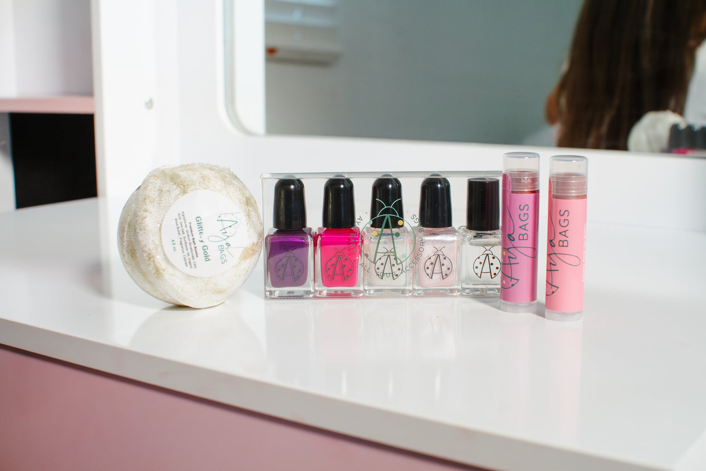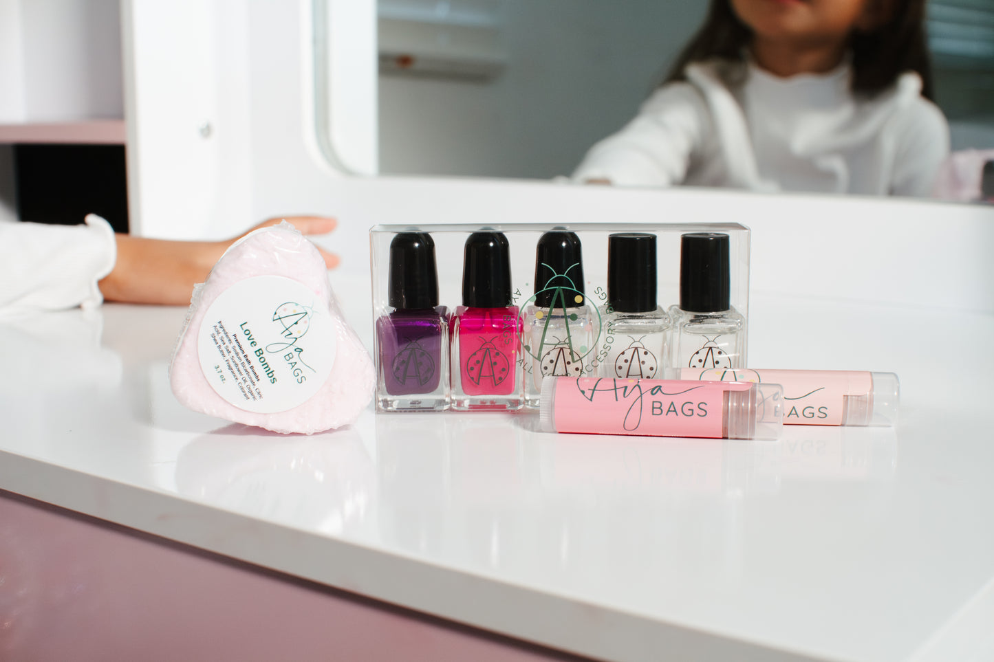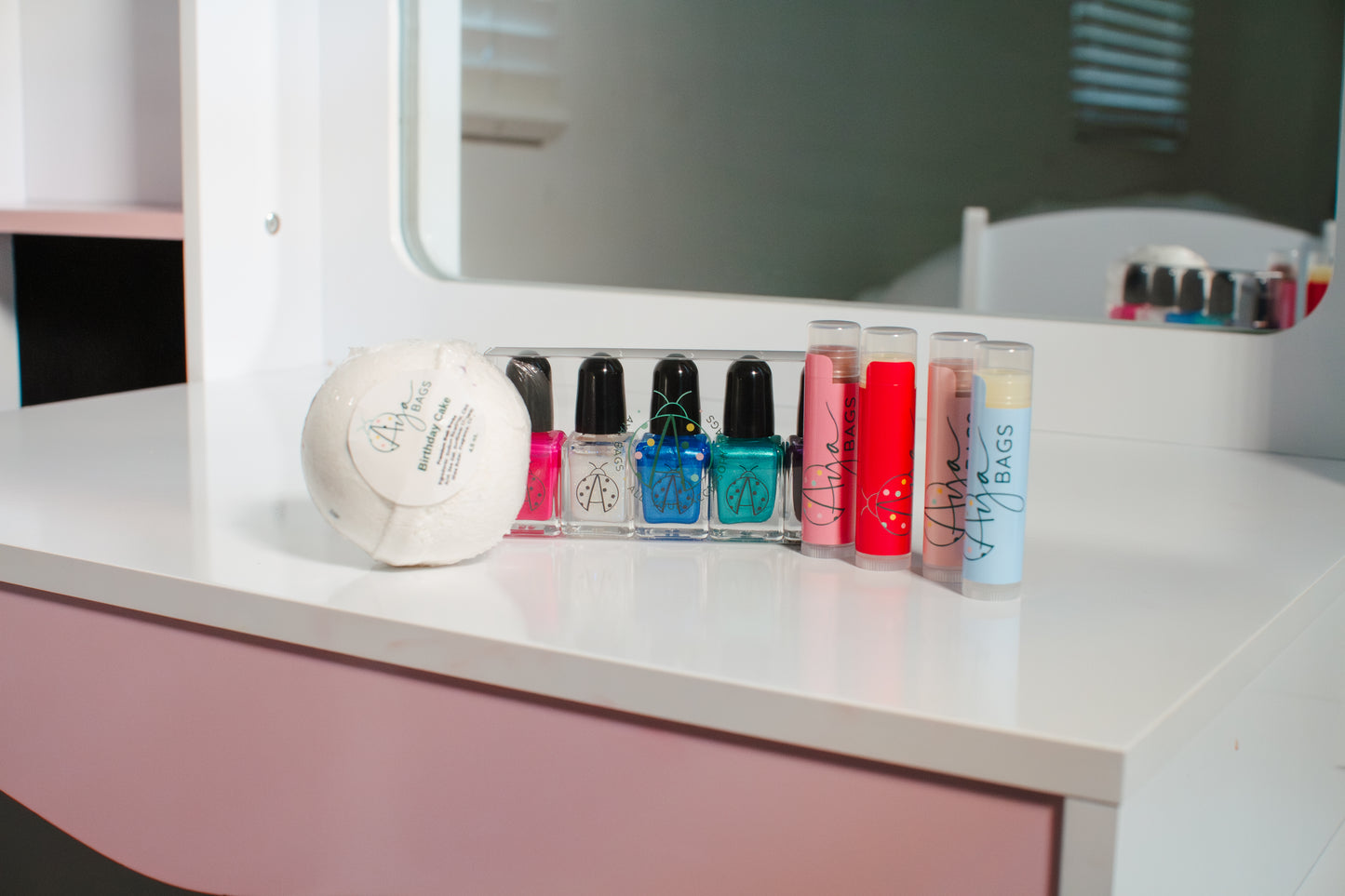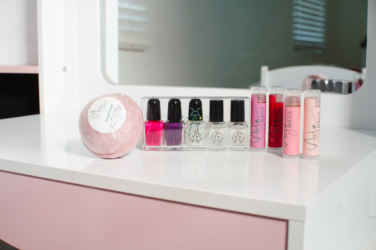 Introducing Aya’s Best Birthday Collection—an exclusive, vibrant set designed to celebrate in style! This collection comes in a Chic AYA Cosmetic Zip Bag, available in dark cream, red, and pink. Inside, you’ll find Aya’s Everyday Strawberry and Vanilla Lip Balm and Aya’s Tiny Tints Lip Balm in Pearly Pink and Shimmy Shimmer. Also the playful Colorful Me, breathable nail polish Cinco set, and Aya’s Signature Birthday Bath Bomb for a relaxing, festive soak. Perfect for gifting or treating yourself, it’s a birthday collection bursting with charm, color, and celebratory flair.